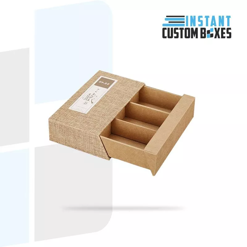 Custom designs and premium materials are combined to ensure a premium brand image for businesses. Custom kraft boxes wholesale with drawer design and durable material ensure ideal protection during the storage and transportation of products.